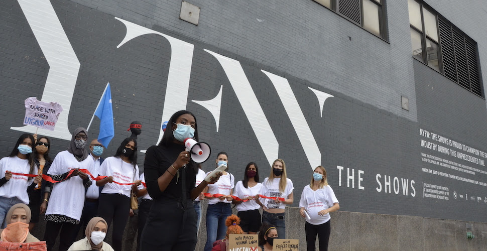 Freedom United, Uyghur groups, and models stage protest at New York Fashion Week