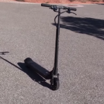 The electric scooter has an interesting look with two wheels in the front and one in the back. The design allows it to stand up so you don’t need to prop it against a wall when you leave it behind like other scooters. It can also improve stability when riding.