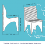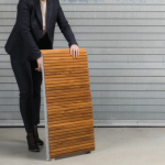 Ollie consists of an articulated aluminum body attached to a flexible slatted wood surface (yep, the tambour). The chair’s patented transformability relies on origami techniques developed for folding thick materials. By adding offsets and incorporating hinge constraints to aluminum sheet metal, we engineered a structure that deploys to standard seating dimensions and flattens down to under 2.25” deep. That’s thinner than the bagel you had for breakfast.