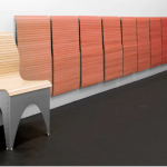 Traditionally used in roll-top desks, a tambour is a flexible surface made of wood slats adhered to a textile canvas. Using a tambour as a seating surface is an innovation that gives the Ollie Chair its unique movement and shape-shifting abilities.