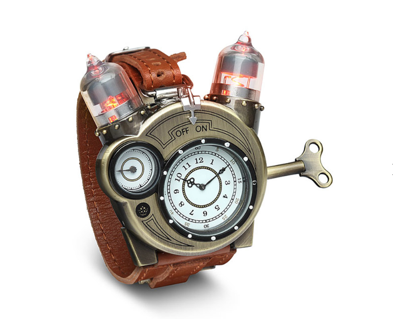 ThinkGeek is well-known for fanciful and sometimes non-existent products that quickly become fan favorites. Recently, the company added a steampunk-styled Tesla Watch to its stable of products, and it’s no joke. The watch, which should arrive in October, sports classic Jules Verne-style flourishes, including an “ornamental” winding key and LED-embedded vacuum tubes, which may help you see the time through your welding goggles.