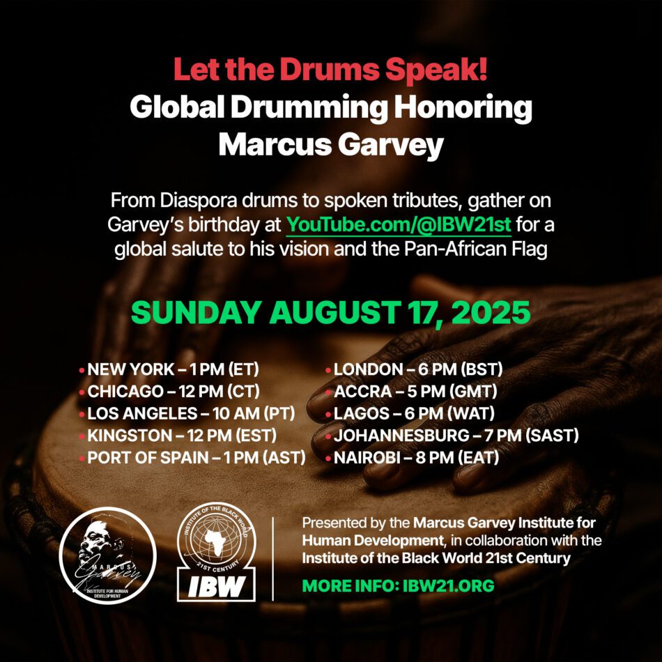 | Celebrate the Birthday of The Honorable Marcus Mosiah Garvey with a Global Drumming Tribute |
