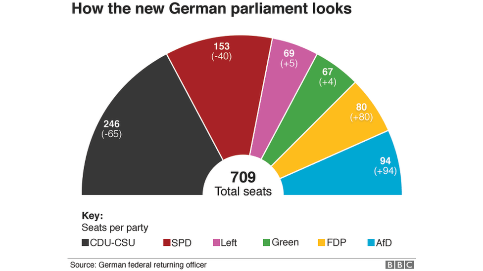 Her bloc’s current coalition partners, the Social Democrats (SPD), say they will go into opposition after historic losses. But Chancellor Merkel said she would still approach them for talks, in addition to the liberal Free Democrats (FDP) and the Greens.