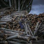 A man moves tree trunks in the Zagros Mountains near Hamedan, Iran. Deforestation affects 30 percent of the forest.