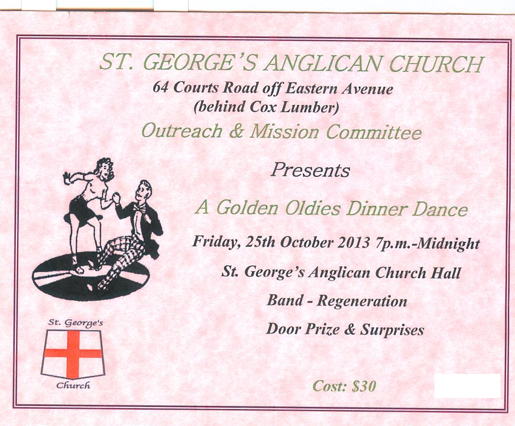 So there can be no other place to go but to St George’s Anglican Church Hall on Courts Road by Cox Lumber on Eastern Avenue.