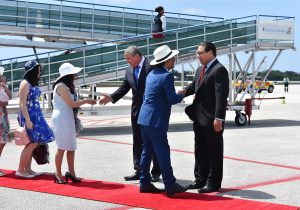 After disembarking from a Cayman Airways flight at around 11.30 a.m., he was greeted by His Excellency the Acting Governor Mr. Franz Manderson, Premier Hon. Alden McLaughlin, MLAs, staff from the Governor’s Office and other senior officials.