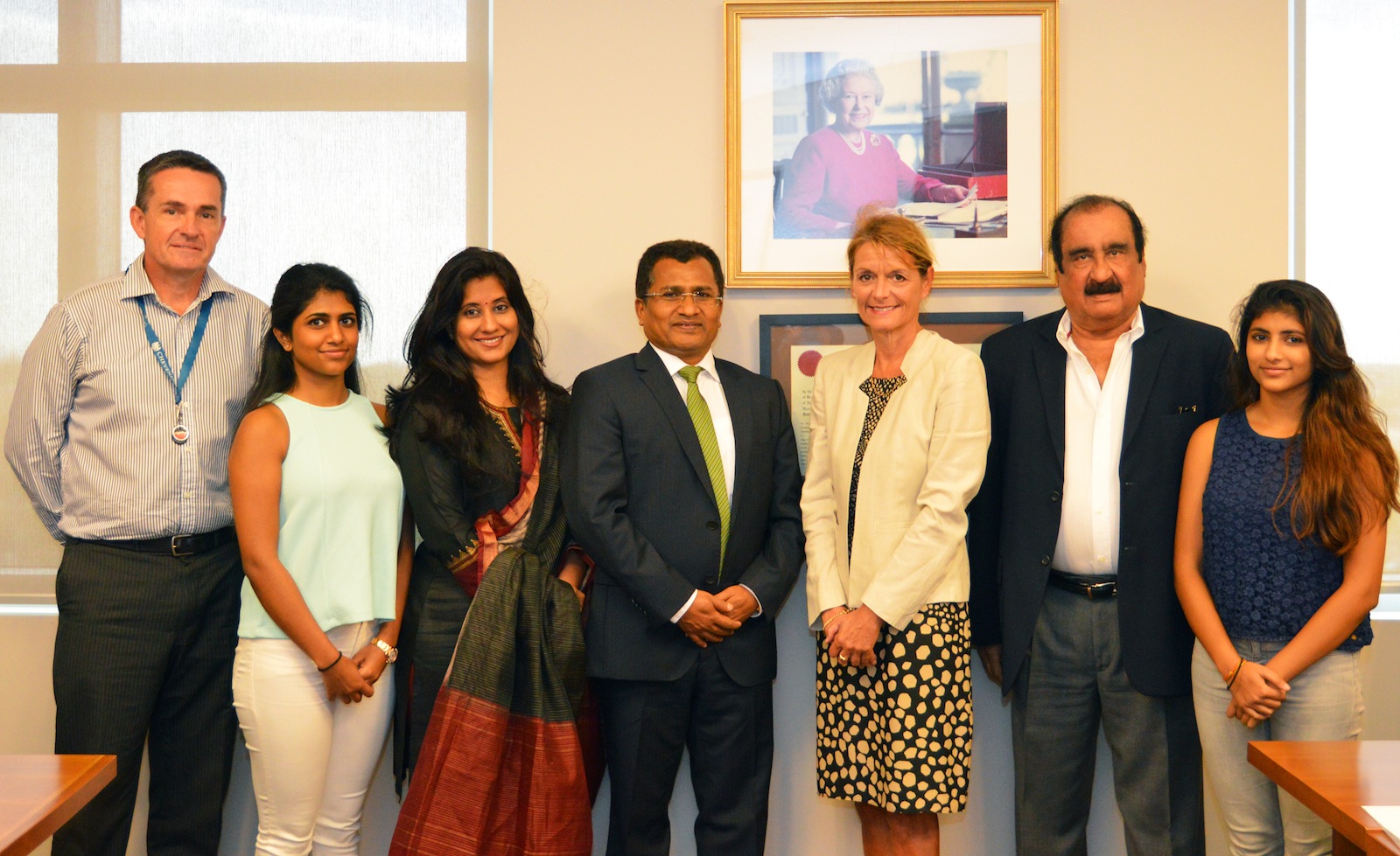 L-r: Chief of the Governor’s Office, Mr. Matthew Forbes, Miss Sahithi Naik, Mrs. Sunitha Naik, His Excellency the High Commissioner of India, Mr. Sevala Naik, Her Excellency the Governor, Helen Kilpatrick, unofficial Honorary Consul for India, Dr. Krishna Mani and Miss Janvitha Naik
