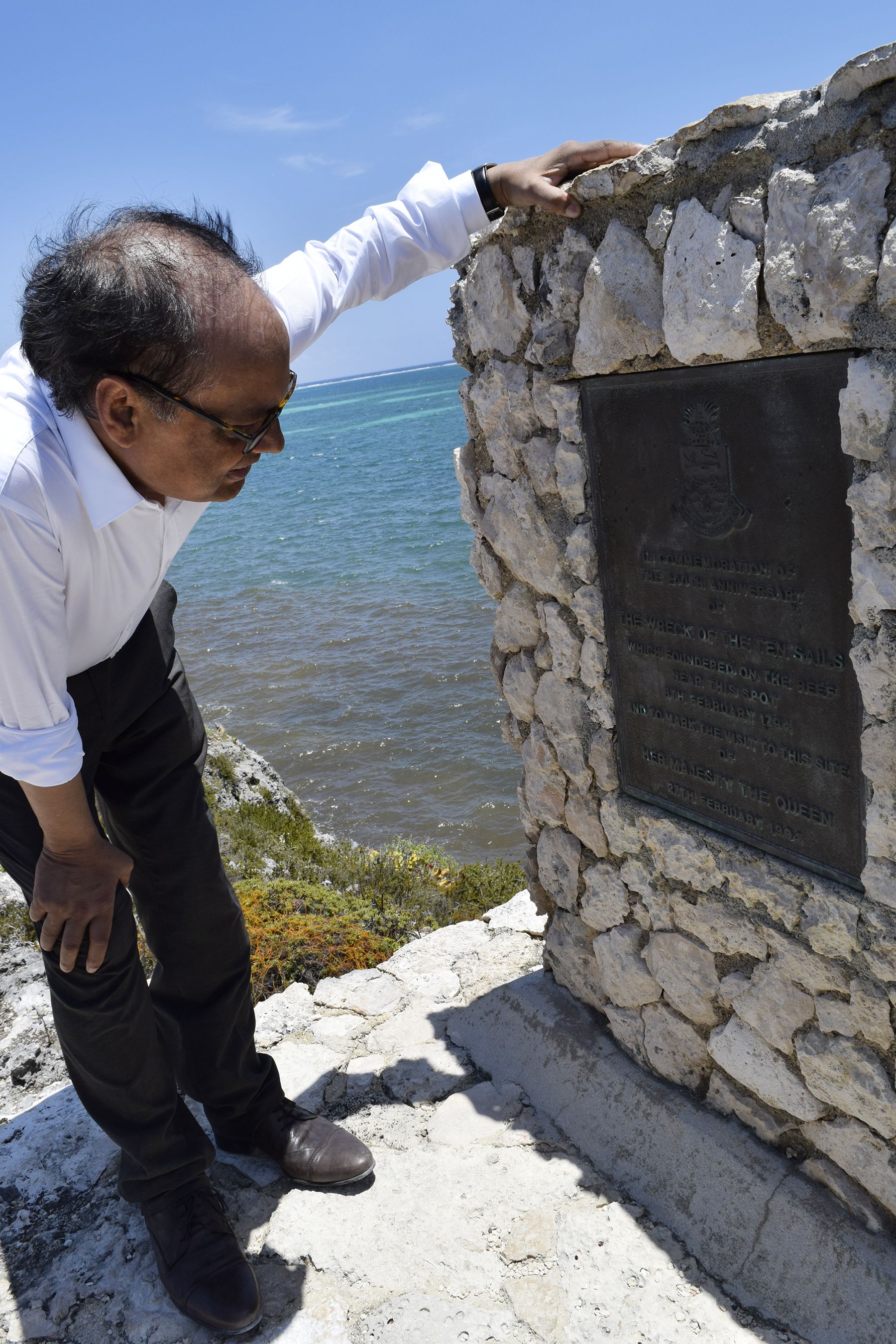 GovEETour12: The Governor at the plaque commemorating the Wreck of the Ten Sails in East End.