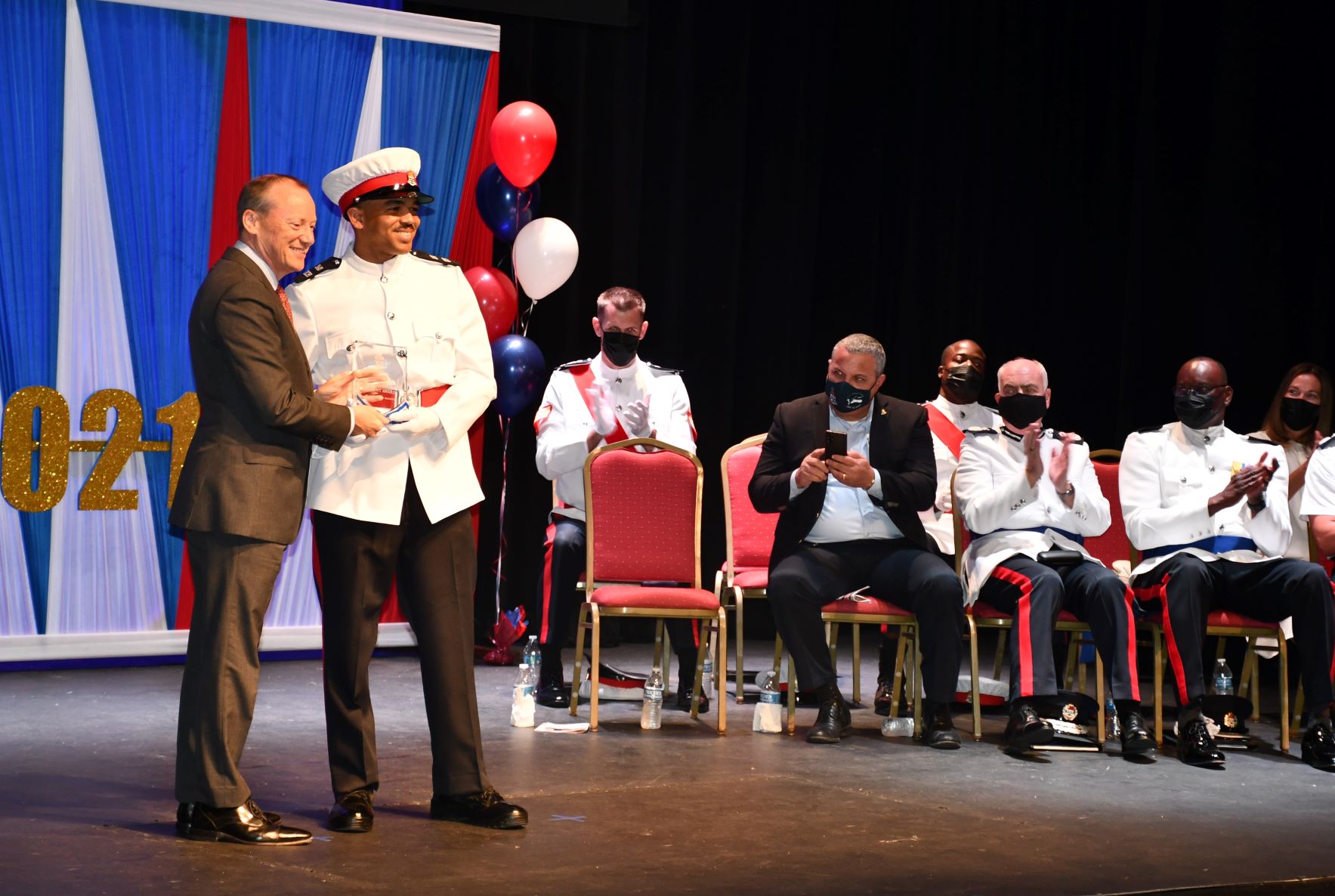 PS Jonathan Kern gave some insight into the training and spoke about how the COVID-19 Pandemic affected the training process. He then sought the assistance of the Honourable Deputy Governor, Mr. Franz Manderson, who was also in attendance, along with Governor Roper and PC Fordyce, in presenting the special awards to eight recipients who excelled in various areas during training.