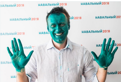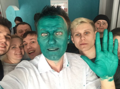 After the incident, some Navalny supporters took to Twitter and Instagram to show solidarity with him by painting their faces green with the hashtag #ЗеленыйНавальный (“Green Navalny”):