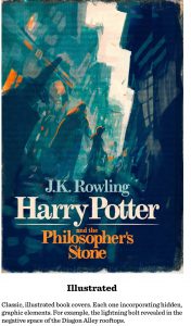 There’s an unpublished series of covers dubbed “Heraldry,” which picks up a different icon for each book — there’s giant spider Aragog on the Chamber of Secrets cover, a Hungarian Horntail for the Goblet of Fire and Marvolo Gaunt’s Ring from the Half-Blood Prince.