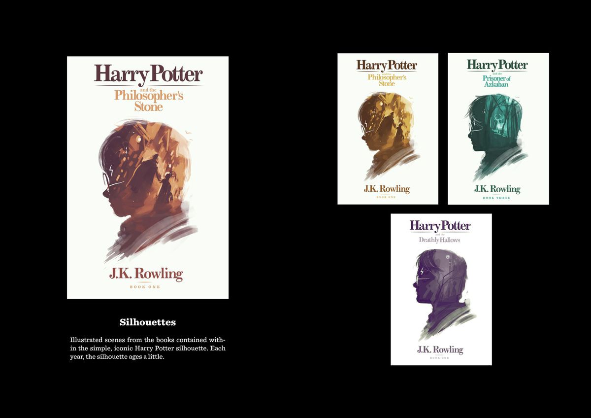 There’s another series dubbed “Silhouettes,” with scenes from each book contained within Harry’s head in profile, which ages a little each time.