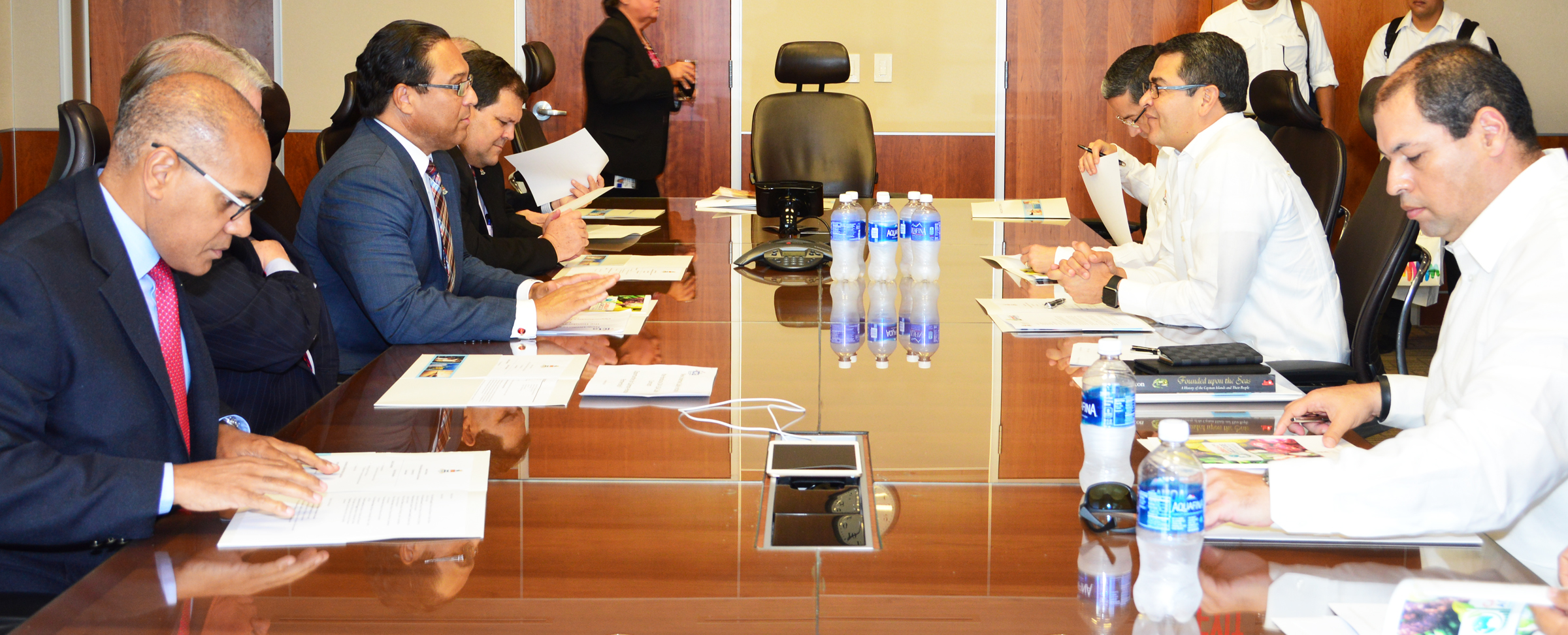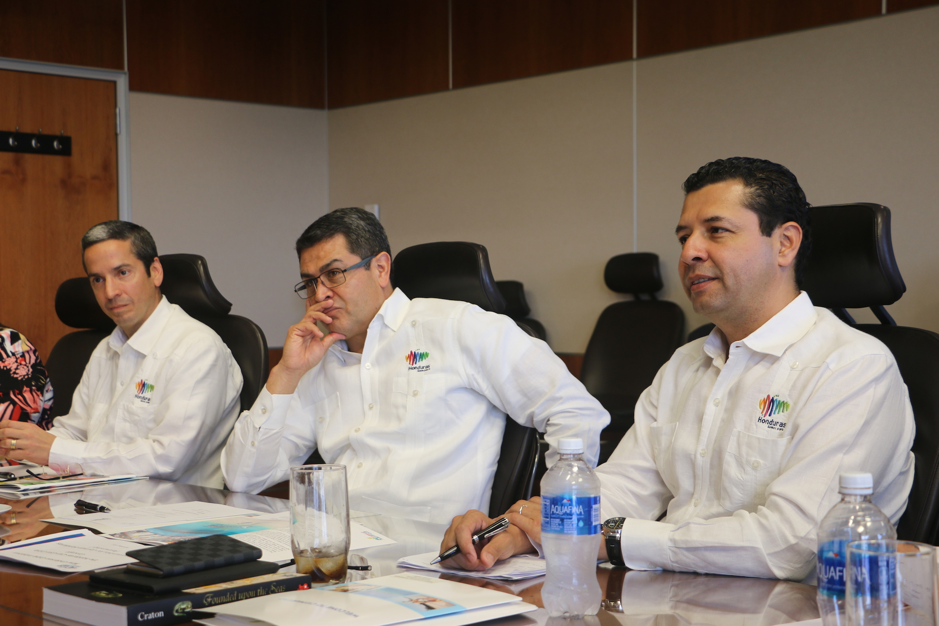 From left, Honduran Secretary of State for Investment Hon. Luis Mata, President Hon. Juan Orlando Hernandez Alvarado and Secretary of State for Economic Development Hon. Arnaldo Castillo.