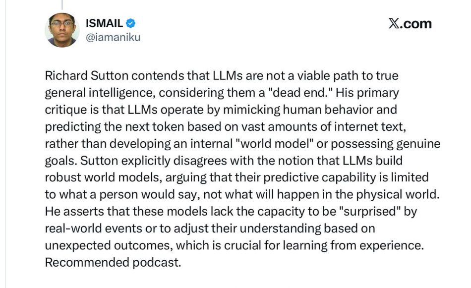Listen to the full podcast of Richard Sutton on Dwarkesh’s show¹⁰