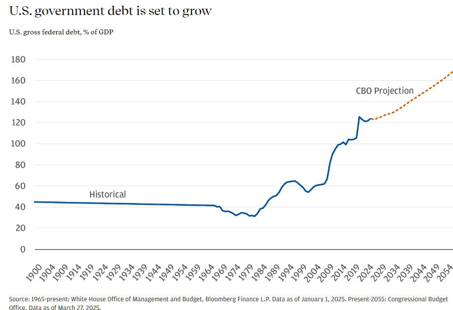 The importance of demographics on the U.S. economy cannot be overstated either. All of this combined with a GenZ culture where by 2030, 45% of prime working age women in the US, defined as women aged between 25 and 44, will be single according to Census Bureau historical data and Morgan Stanley forecasts – the largest share in history¹⁵. The fertility bust, combined with the inevitable rising healthcare costs of an aging population, and the AI deskilling of a so-called “Generative AI” is going to warp the outlook of young people even further through the 2030s. The labor crunch of more Americans retiring than immigration under Trump will allow to come in¹⁶, means a setting up yet another labor crisis. This is not even talking about the coming debt crisis of the U.S. Government that’s quickly approaching.