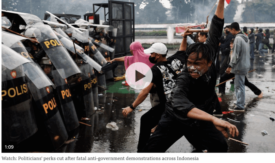 “As the government is undertaking austerity measures, and at a time when citizens are feeling economically insecure, the notion that Indonesia’s already wealthy political class would see their incomes rise filled people with rage, and they spilled onto the streets to express that rage,” Dr Eve Warburton, director of the Indonesia Institute at the Australian National University, told the BBC.