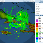 Figure 2. Hurricane Matthew as seen on Gran Piedra, Cuba radar at 8:20 am EDT October 5, 2016. A mostly complete eyewall had been rebuilt by this time. Image credit: INSMET.
