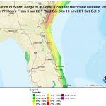 The 00Z Wednesday runs of our top models for forecasting hurricane tracks—the GFS, European, and UKMET models—all show that Matthew will approach within 50 miles of, or make landfall on, the coast of Central Florida on Friday. The 06Z Wednesday run of the GFS model showed this, as well. At 11 am EDT Wednesday, Hurricane Warnings were up for much of the east coast of Florida, including the Orlando area, and NHC had issued a new experimental Storm Surge Warning for the coast of Florida from North Palm Beach to the Flagler/Volusia County line. A storm surge warning indicates there is a danger of life-threatening inundation from rising water moving inland from the shoreline somewhere within the specified area, generally within 36 hours. NHC is advising that storm surge inundation of 3 – 5 feet could occur on Friday. Farther to the north of the warned area, extending to Fernandina Beach, a Storm Surge Watch is posted, meaning that there is the possibility of life-threatening inundation during the next 48 hours. The greater threat to Florida, though, may be wind damage. In their 11 am EDT Wednesday Wind Probability Forecast, NHC gave highest odds of hurricane-force winds in Florida to Ft. Pierce (47%), West Palm Beach (43%), and Cocoa Beach (40%).