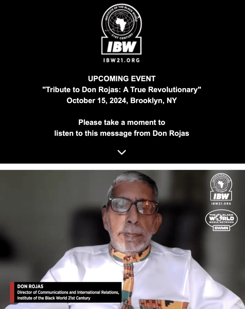 ICYMI: A Message from Don Rojas – Re: “Oct 15th Tribute to Don Rojas: A True Revolutionary”