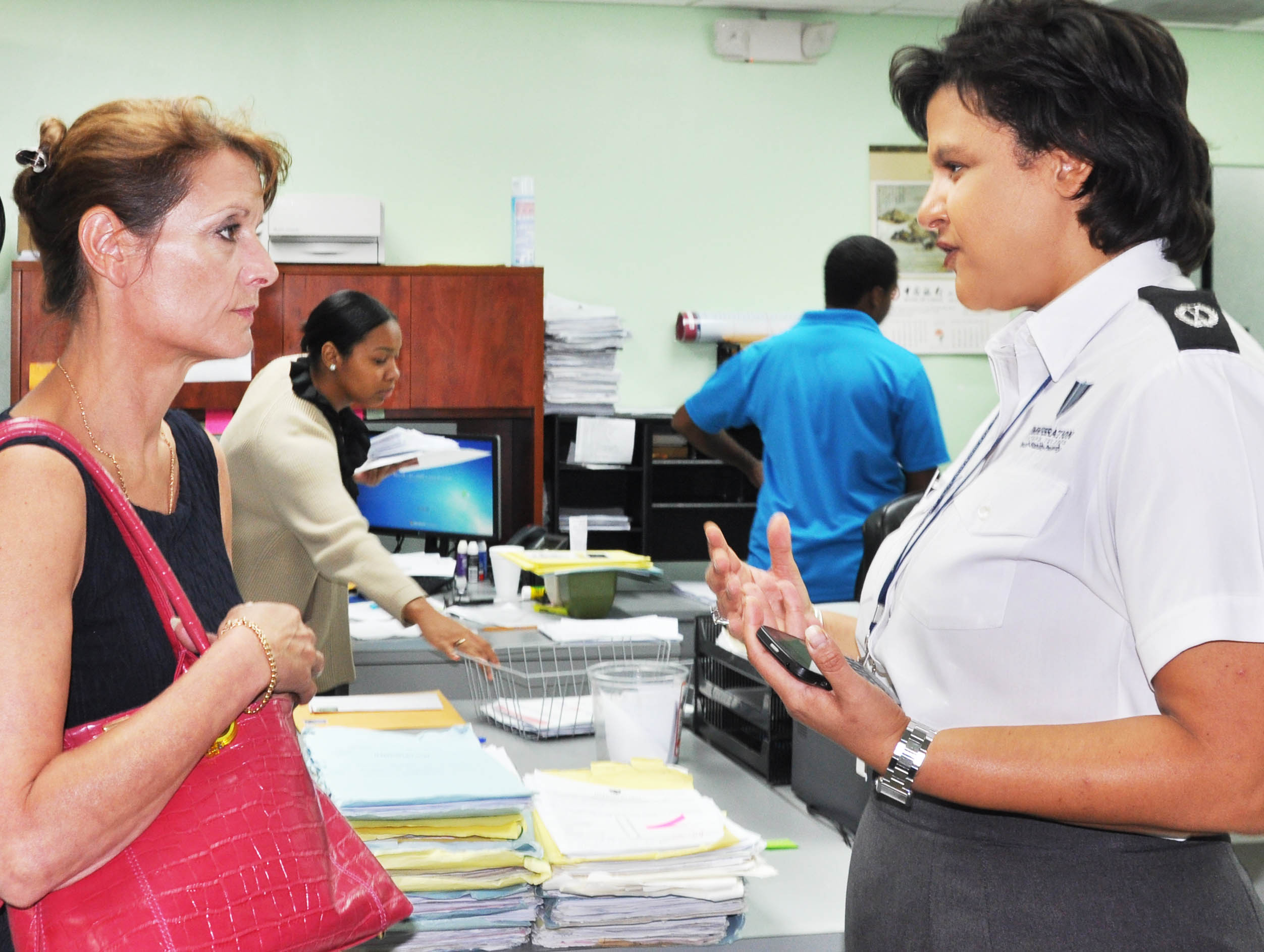 Chief Immigration Officer Linda Evans last Friday, 11 October 2013, led Governor Helen Kilpatrick, CB, on a review of the services offered by the Department of Immigration.