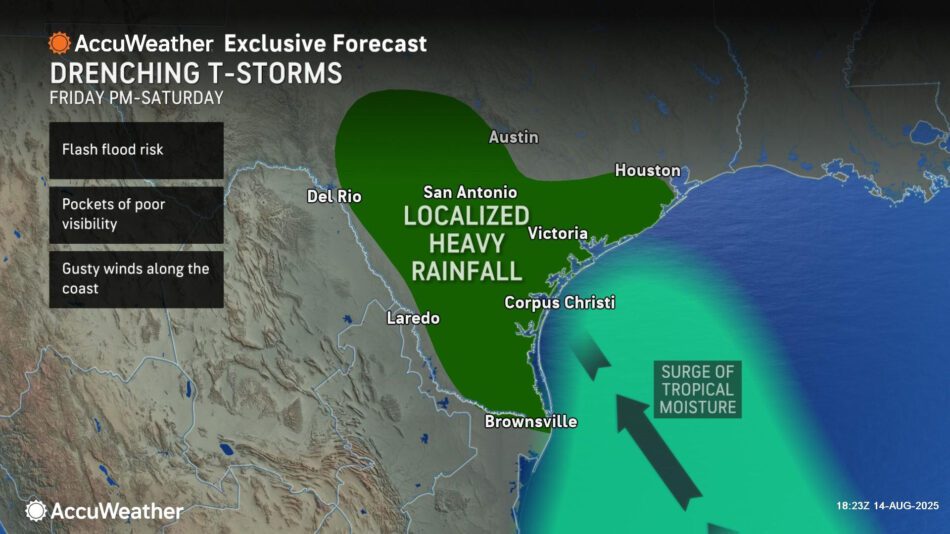 Regardless of tropical development, increased thunderstorm activity Friday and Saturday could bring a localized flash flooding risk to central and South Texas, includi