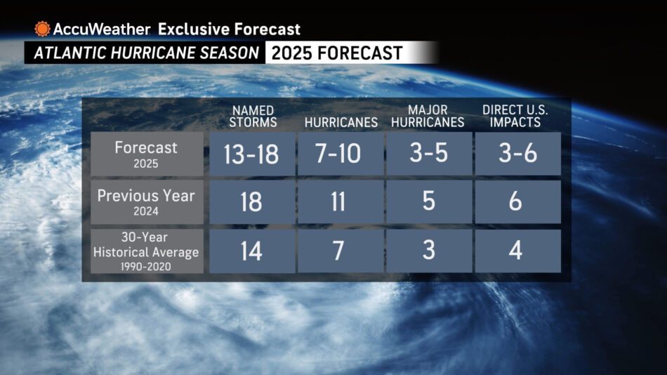 AccuWeather® forecasting 3-6 direct storm impacts to the U.S. during the 2025 Atlantic Hurricane season