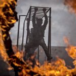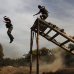 In Syria, members of the Kurdish YPG train on monkey bars and fire obstacles.