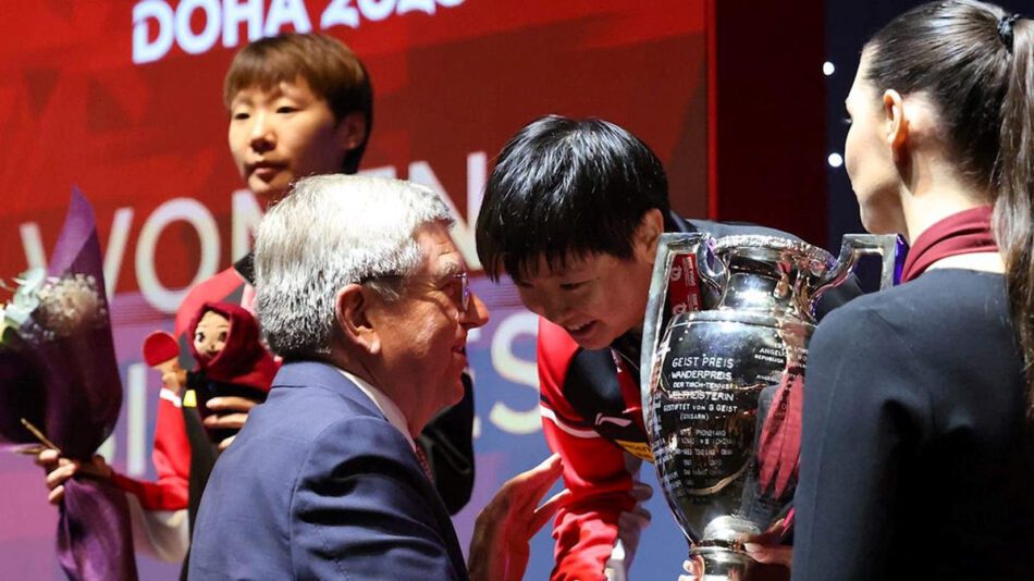 Last week, IOC President Thomas Bach was in Doha, Qatar, where he attended the 2025 International Table Tennis Federation (ITTF) World Table Tennis Championships held at Lusail Sports Arena – a landmark venue that reflects Qatar’s emergence as a leading host of global sporting events. On Sunday afternoon, he attended the finals and presented the ITTF’s Geist Trophy to women’s singles world champion Sun Yingsha of China, who successfully defended her crown in a gripping seven-game classic against compatriot Wang Manyu.