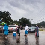 A local volunteer from Crossing Jordan Church helps other residents get ice from a vending machine on September 10 in Tampa.