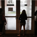 Evacuees in Naples watch from inside a shelter as Irma inches closer on September 10.