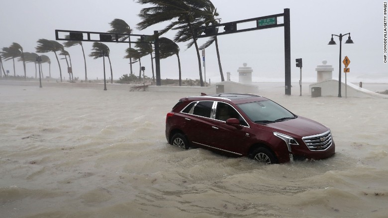 A car sits abandoned in storm surge as Hurricane Irma hits in Fort Lauderdale, Florida. September 10.