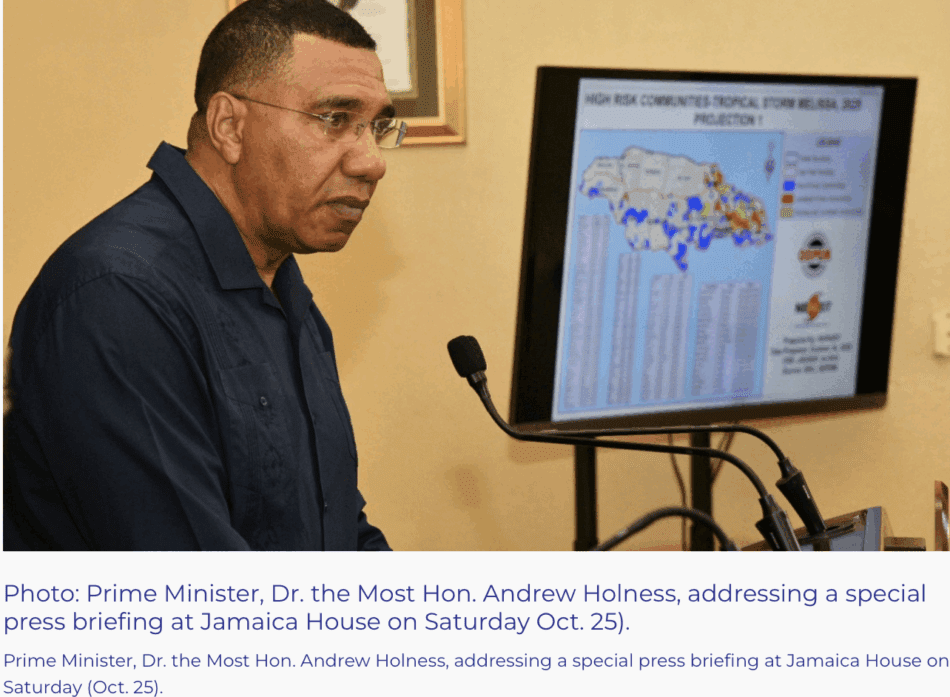 The Prime Minister, who was addressing a special press briefing at Jamaica House on Saturday (Oct. 25), said that the entire island will be affected by the system.