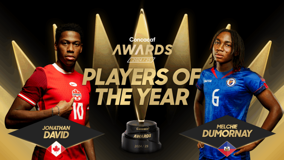 Jonathan David and Melchie Dumornay Named 2024/25 Concacaf Players of the YearRaúl Jiménez’s free kick goal against Canada in the Concacaf Nations League Finals has been voted Goal of the Year by fansMiami, FL (Thursday, November 6, 2025) – Concacaf has announced that Jonathan David (Canada) and Melchie Dumornay (Haiti) have been named the 2024/25 Concacaf Men’s and Women’s Player of the Year, respectively.