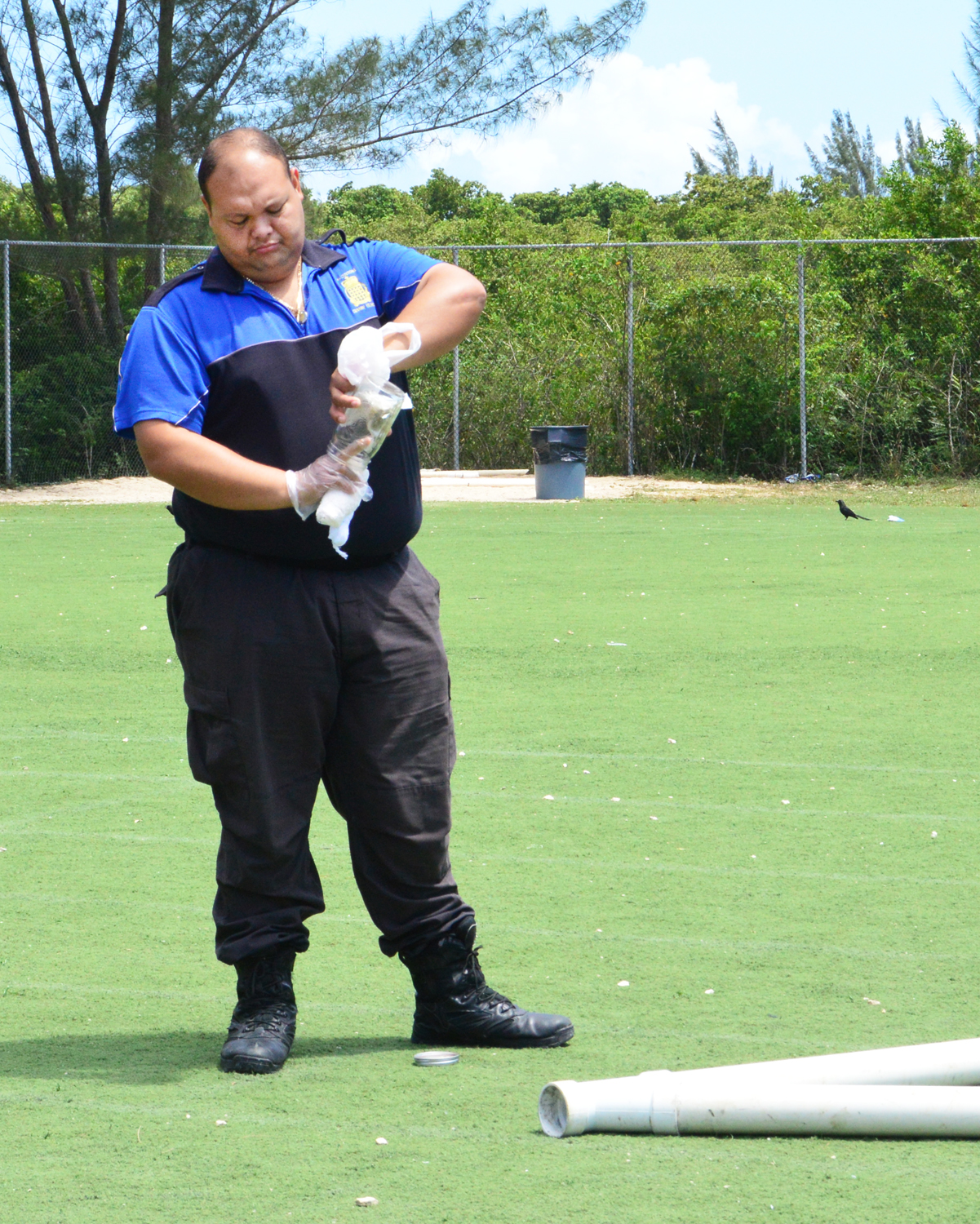 Customs K-9 unit’s sleek, black Labrador retriever Nugget and agile Belgian Malinois Bolt demonstrated how they detect contraband, from drugs to guns, at all entry points into the Cayman Islands.