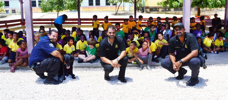 During a demonstration on the school grounds, Customs K-9 unit chief Malachi Powery, officers Anthony Echenique and Tate McFarlane put the canines to work finding drugs they had hidden. The dogs promptly demonstrated just how good their noses are to much approval from the young audience.