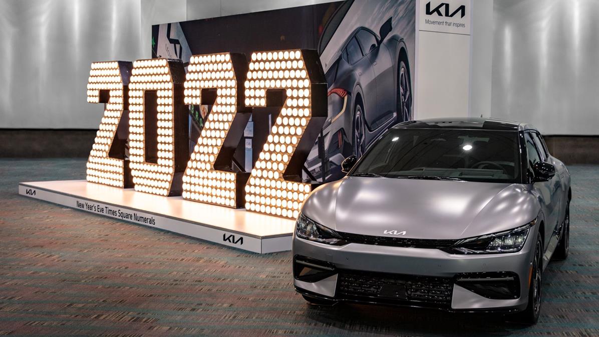 Kia America is once again delivering the future – today. Now through November 28, Kia will present the iconic 2022 New Year’s Eve Numerals at the Los Angeles Auto Show where attendees can take the perfect selfie and get a closer look at the seven-foot tall, 1,130-pound numerals that will light up at midnight atop Jamestown’s and New Tradition’s One Times Square on New Year’s Eve and remain there throughout the 2022 year. But in a surprising twist at the show, some of the most recognizable numerals in the world will be energized by an all-new, all-electric Kia EV6 to highlight that this is Kia’s first dedicated electric vehicle that can also act as a power source on wheels.