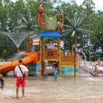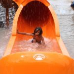 During the grand opening, children splashed in the water, sprayed each other with water jets, climbed up the play area to slide down either of its two slides, as their parents either relaxed on nearby lounge chairs or joined in the fun themselves.