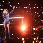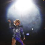 It wasn’t the last time Gaga soared through the stadium. She performed acrobatic moves and swung high across the stage before landing to dance with a crew to “Born this Way.”