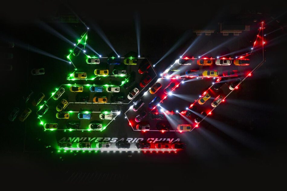 Outside the venue, 100 Lamborghini cars formed a stunning “20” formation — a powerful tribute to the brand’s 20-year legacy in China. Set against Shanghai’s iconic skyline, the display created a striking visual celebration of Lamborghini passion, shared with guests and fans.
