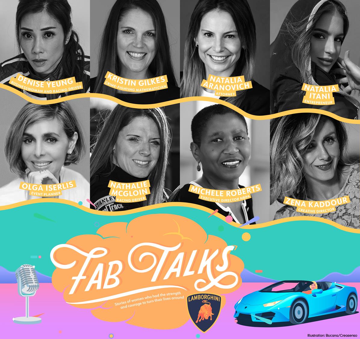 The FAB podcasts delve into the transformational stories of the women, who all strongly identify with the Lamborghini brand and the FAB platform as an opportunity to change the status quo. Providing an inspirational insight into each woman’s personal journey, the podcasts provide support and advice for others who may find themselves in parallel situations, and who identify with the pioneering and dynamic spirit of these women and Lamborghini.