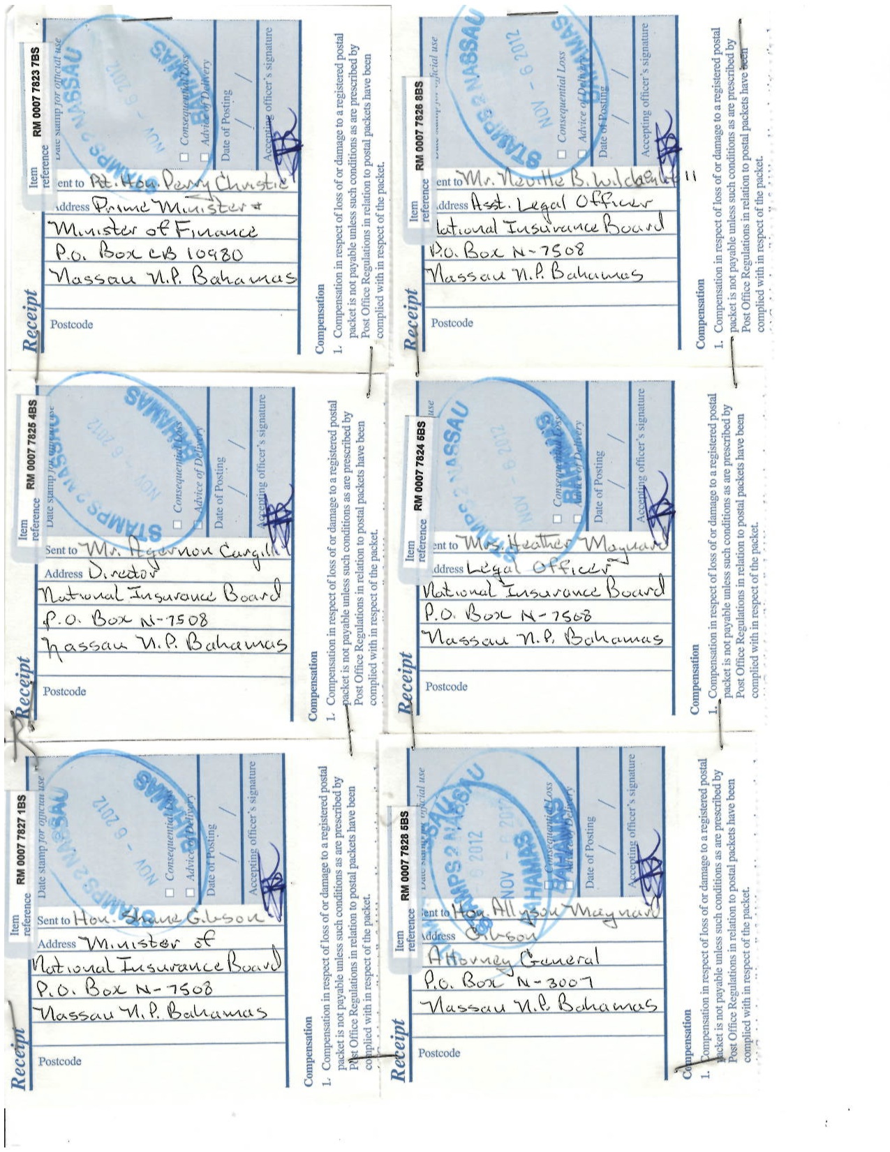 Also attached dated 25th October 2013 is my Summons Pursuant to Article 28 of the Constitution of the Commonwealth of the Bahamas 1973 for a hearing against National Insurance Board before the Honourable Justice Ian Winder the 22nd April, 2014 at 10:00 a.m. in the morning. My affidavit in support with conclusive evidence against all persons dated and filed 6th December 2013 is also attached.