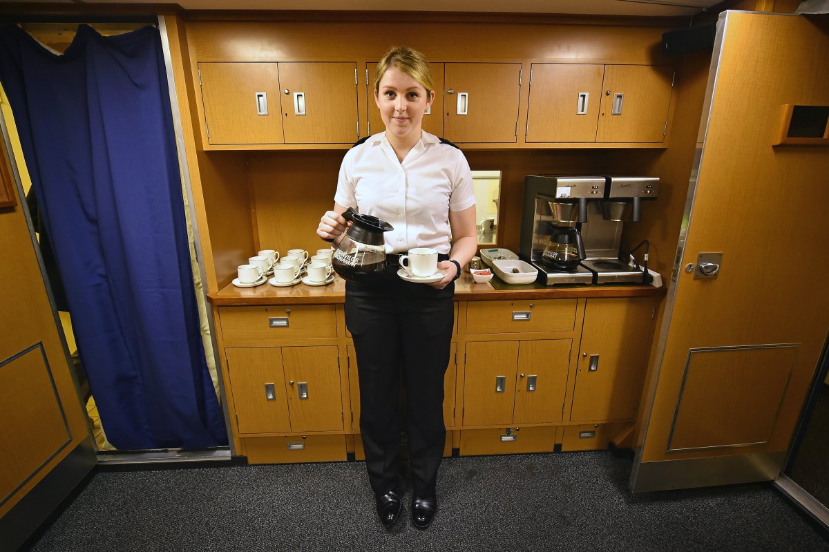 A steward in the wardroom on the Vigilant. The wardroom is the dining area reserved for naval commissioned officers.