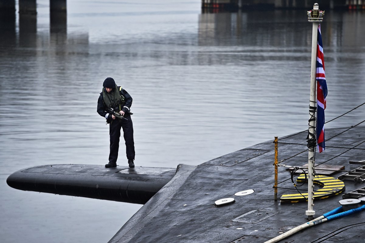 Royal navy security personnel stood guard on the Vigilant at Her Majesty’s Naval Base, Clyde on January 20 in Rhu, Scotland.