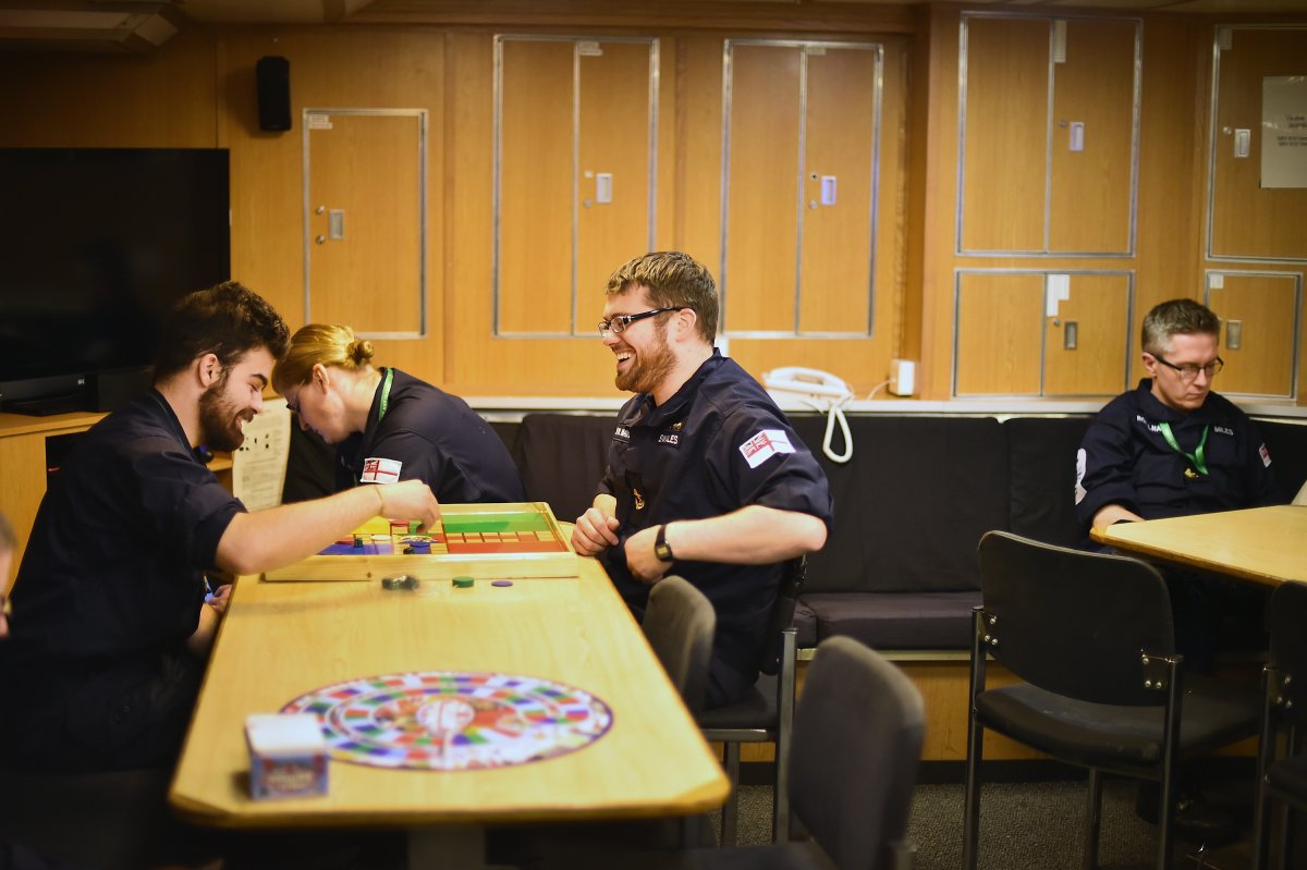 Royal navy personnel executing their duties inside the control room on the Vigilant.