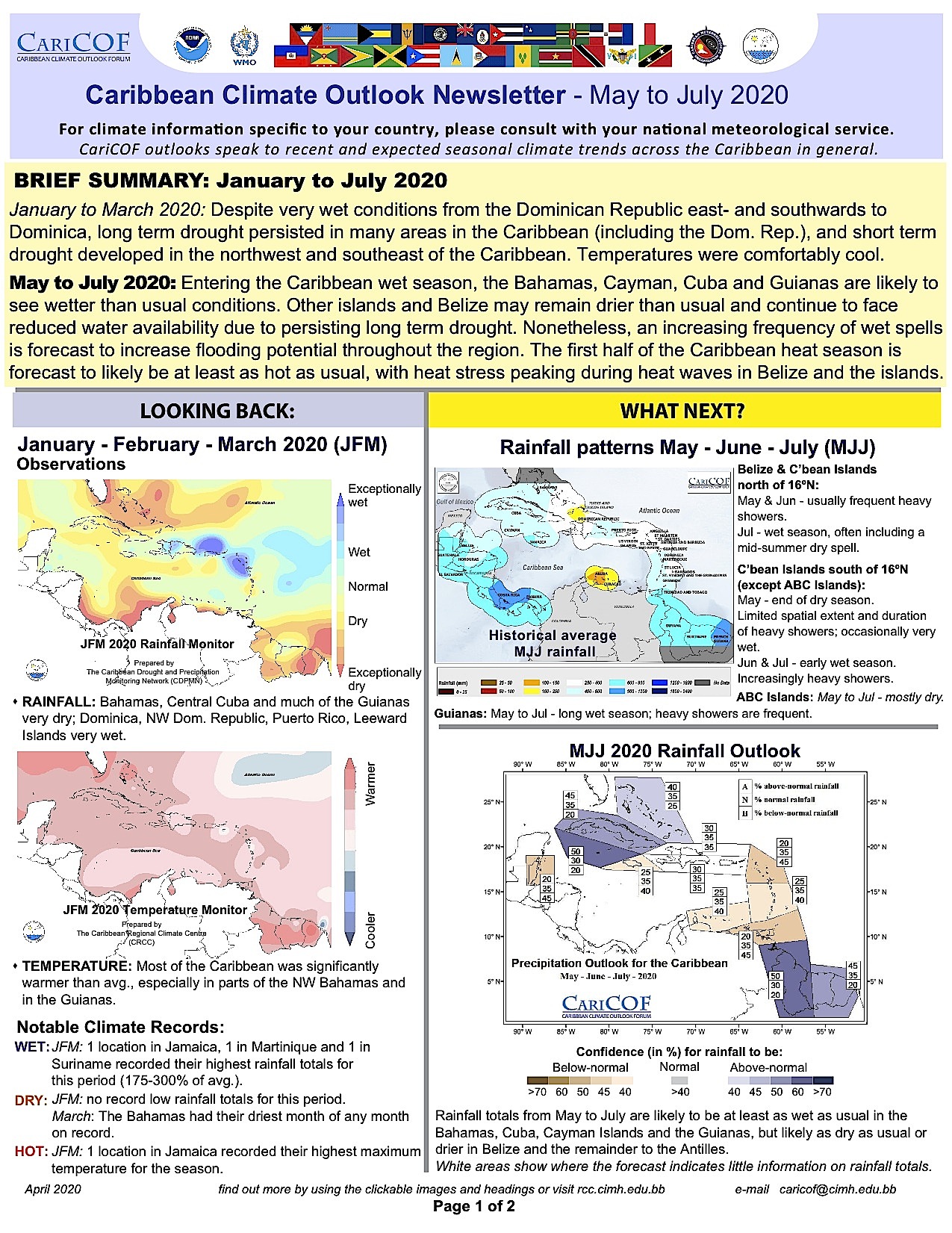 According to CariCOF, for the first three months of this year, despite very wet conditions, long-term drought persisted in many areas in the Caribbean and short-term drought developed in the north-west and south-east of the Caribbean.