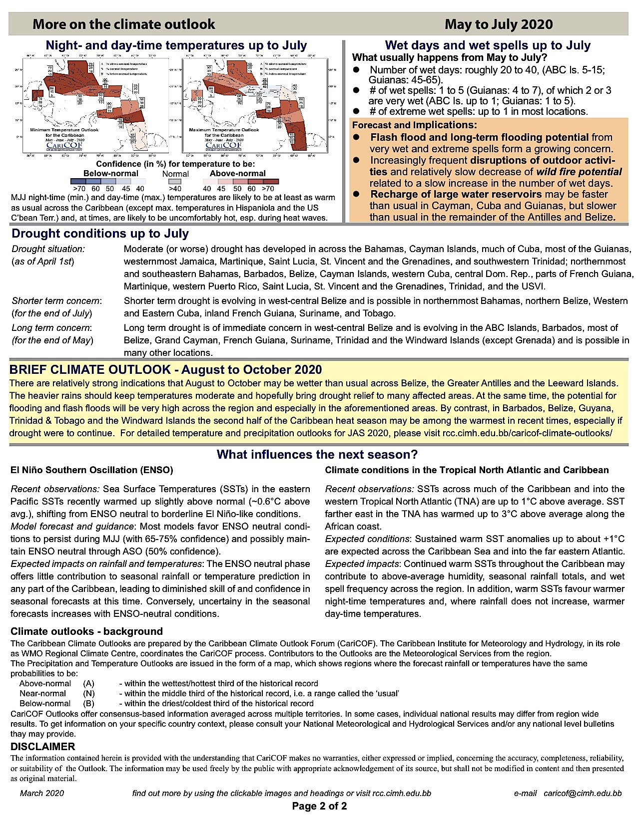 “Nonetheless, an increasing frequency of wet spells is forecast to increase flooding potential throughout the region. The first half of the Caribbean heat season is forecast to likely be at least as hot as usual, with heat stress peaking during heat waves in Belize and the islands,” it warned.