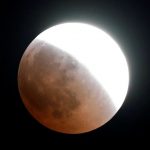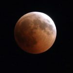The eclipse colored the moon orange-red due to sunlight passing through our planet’s atmosphere and bouncing off the moon.