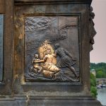 The bottom right of the statue depicts St. John of Napomuk being tossed off the bridge. Hopefully your luck is better than his.