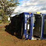 A double-decker bus “rolled over” in Suffolk, injuring the driver and several passengers. Witnesses told police the vehicle blew over at 08:00 GMT, rolling onto its side and coming to a stop in a field in Hadleigh