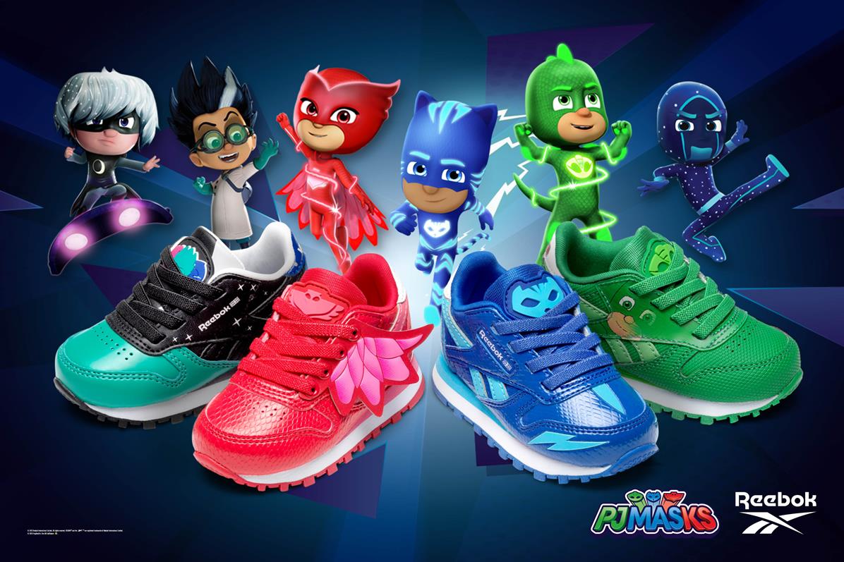 The Reebok x PJ Masks collection will be available in toddler sizing starting February 28, 2022 at Reebok.com/us/pj_masks.